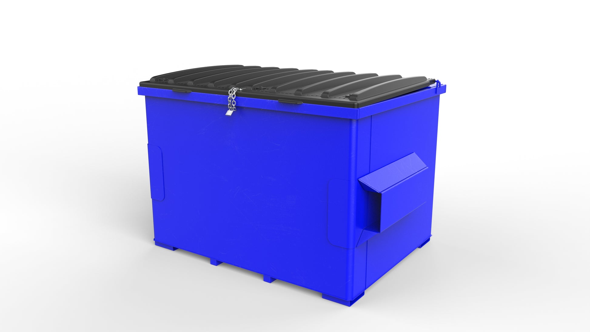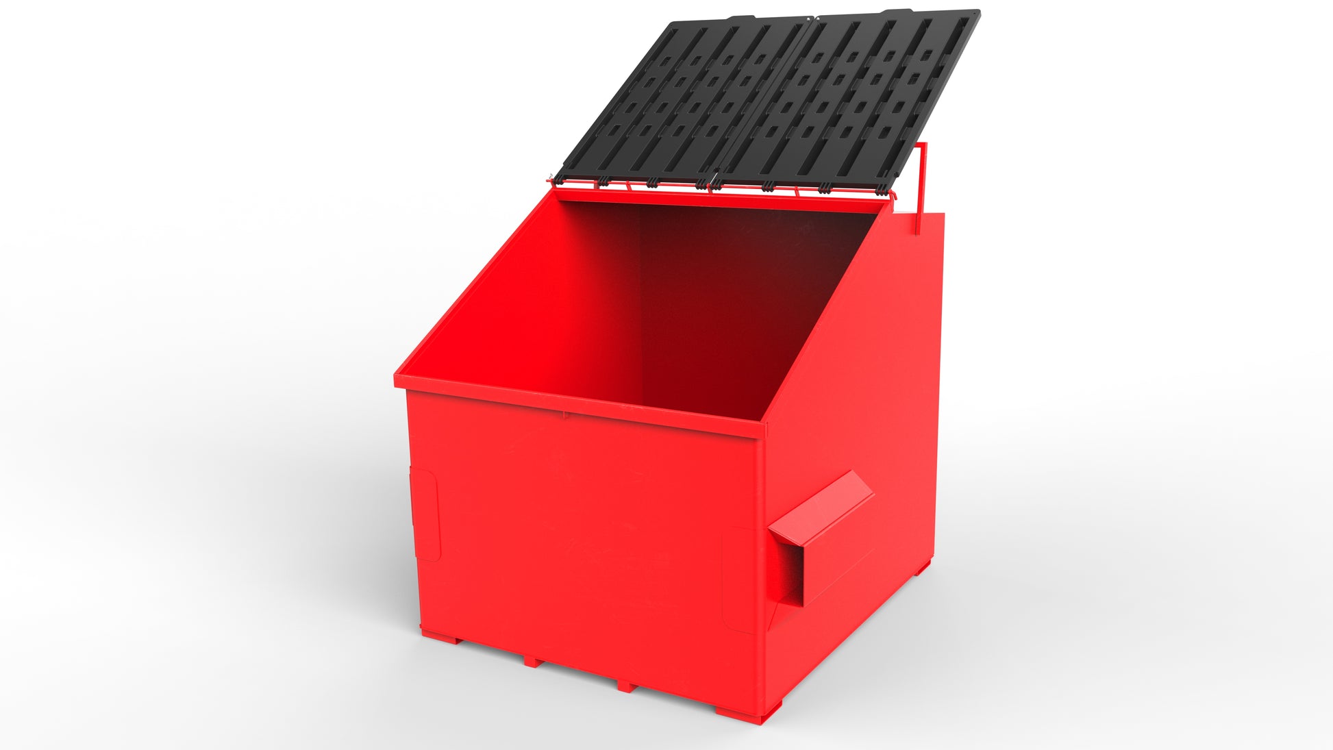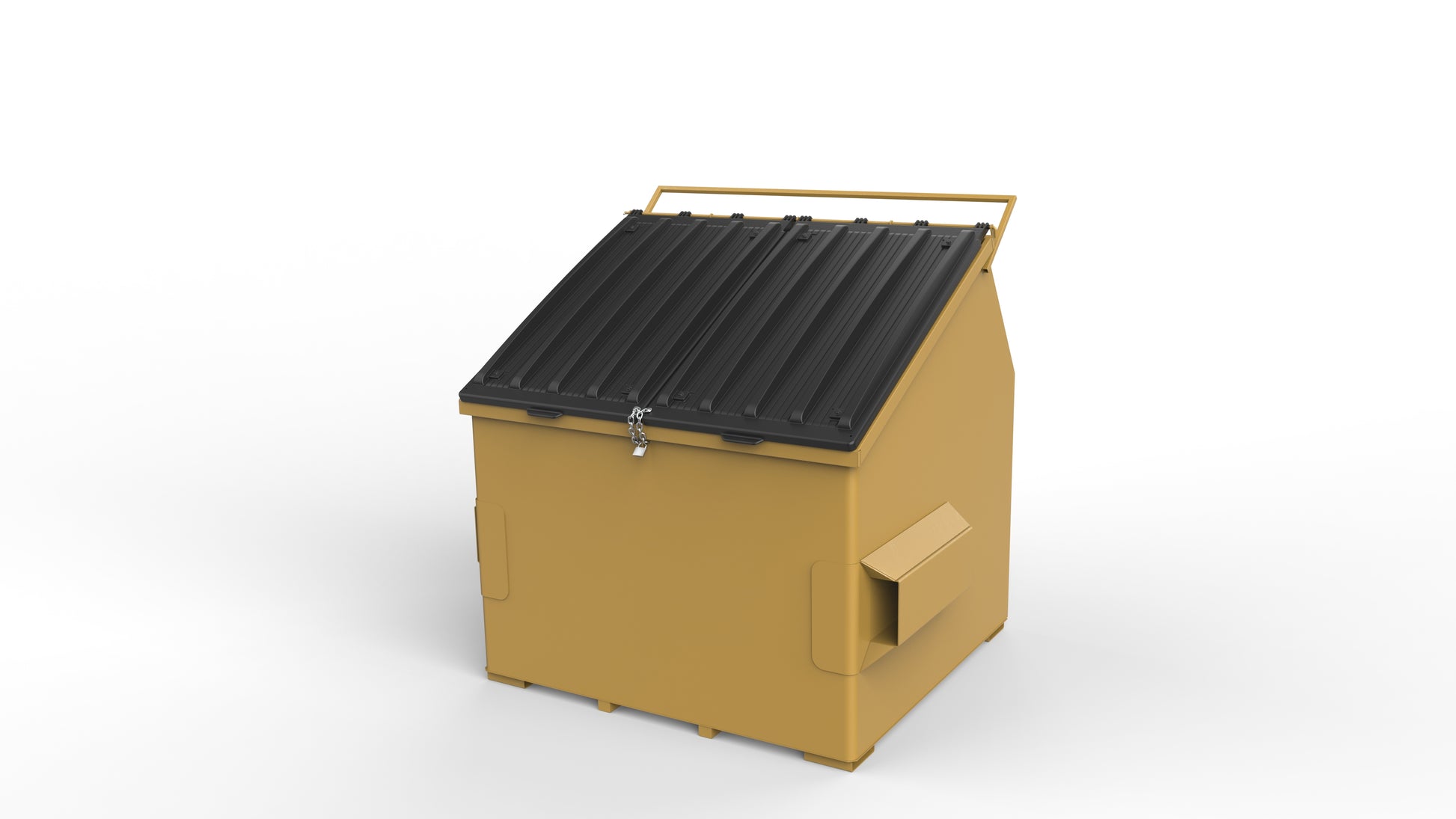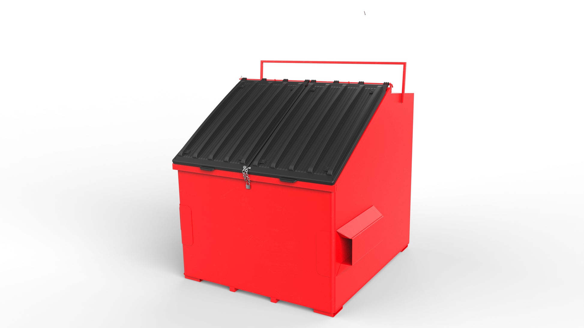 The fully powder coated interior and exterior provides enhanced corrosion resistance resulting in a longer lasting bin. We sand blast our bins before painting, removing any containments, to ensure the best paint adhesion possible. Our signature rounded corners and heavy-duty corner guards minimize the potential for damage while keeping your bin looking professional. Oversized fork pockets with lead-ins improve visibility and make pickup easier for the driver. Corner foot plates accommodate large HD casters or custom skid plates, offering versatility. The durable rotomolded lids feature UV stabilized plastic and four heavy-duty hinge points for added strength. Easy-lift lid handles make operation effortless, while lid chains allow for padlock attachment (padlock sold separately).