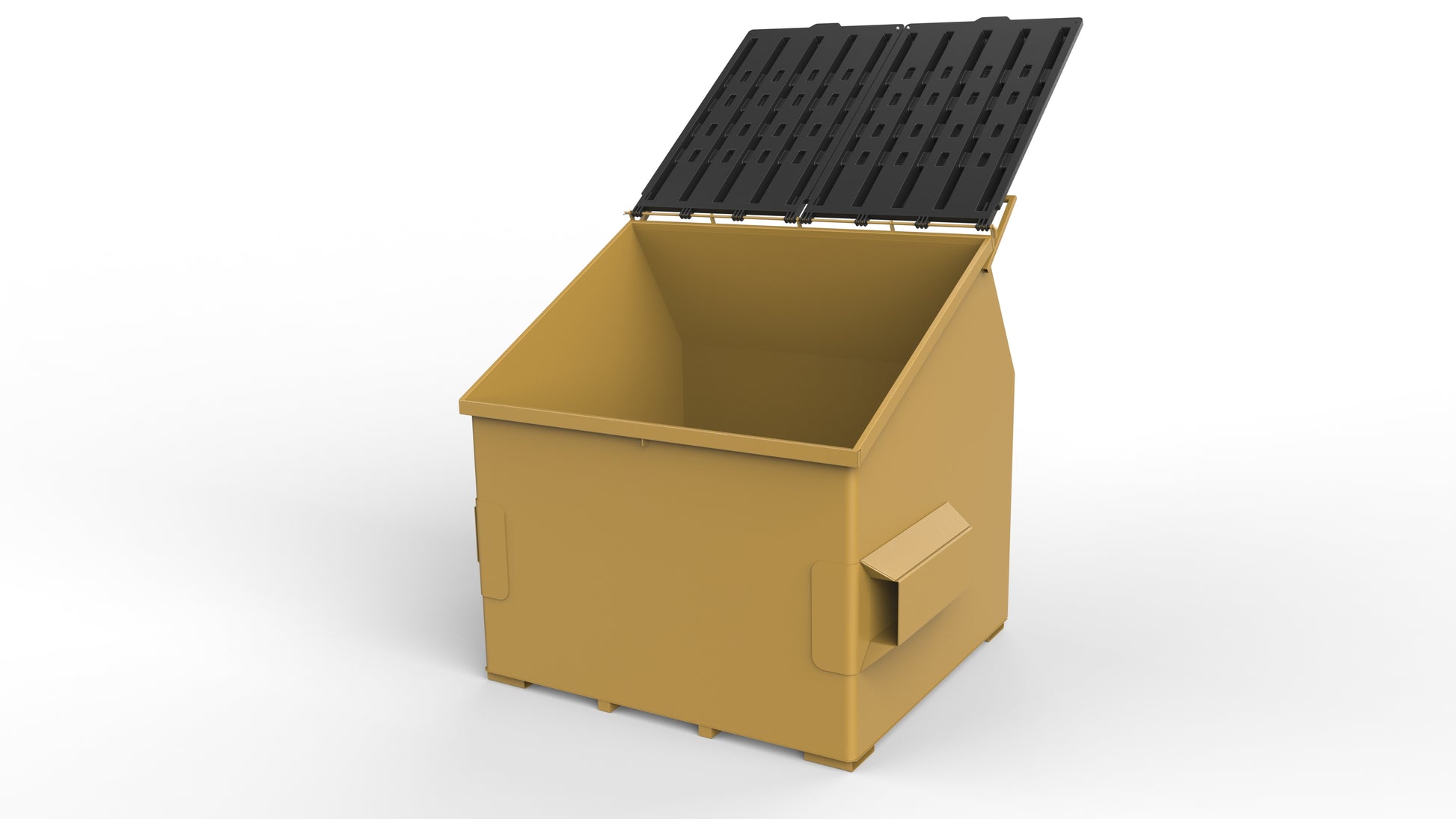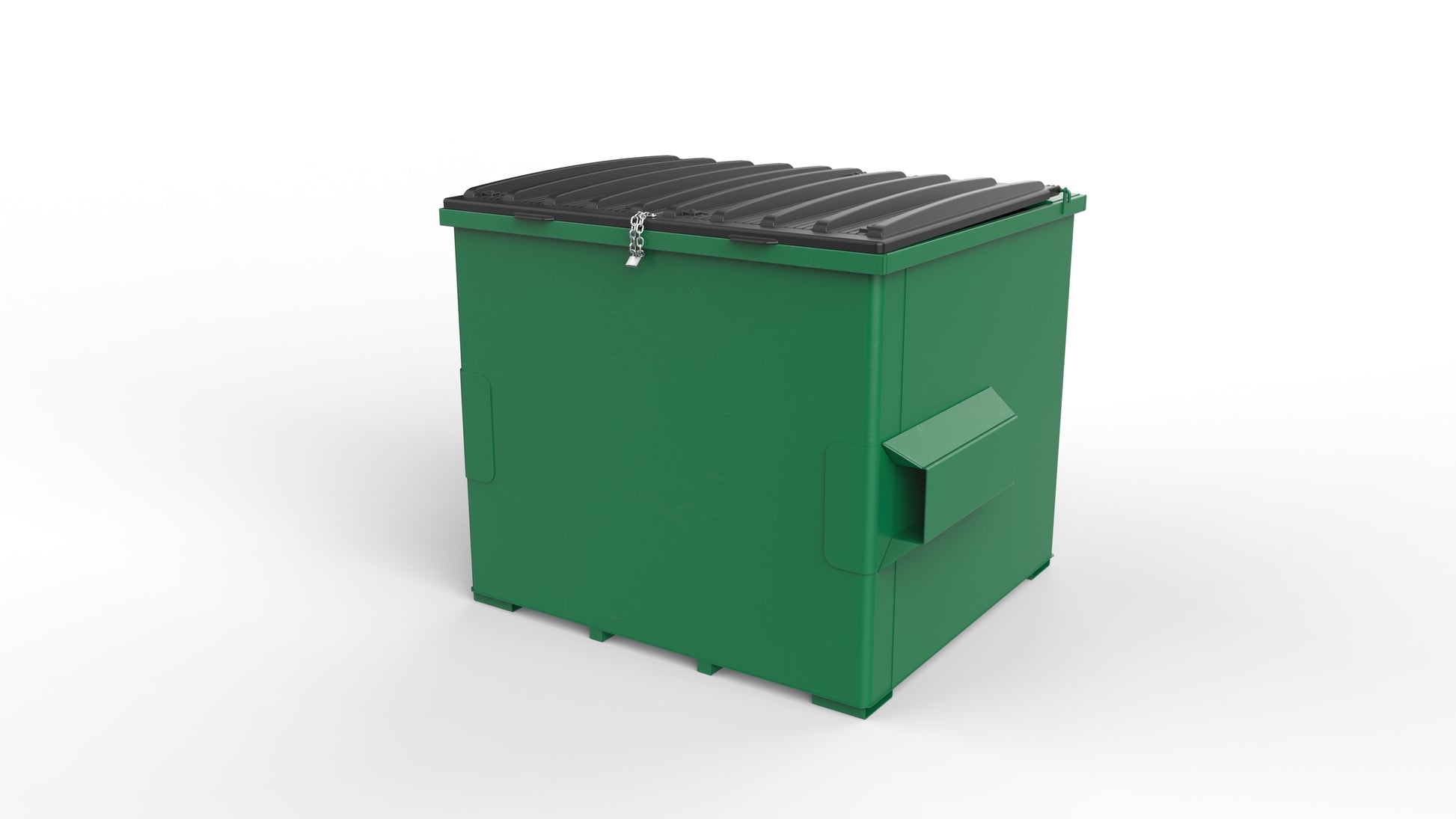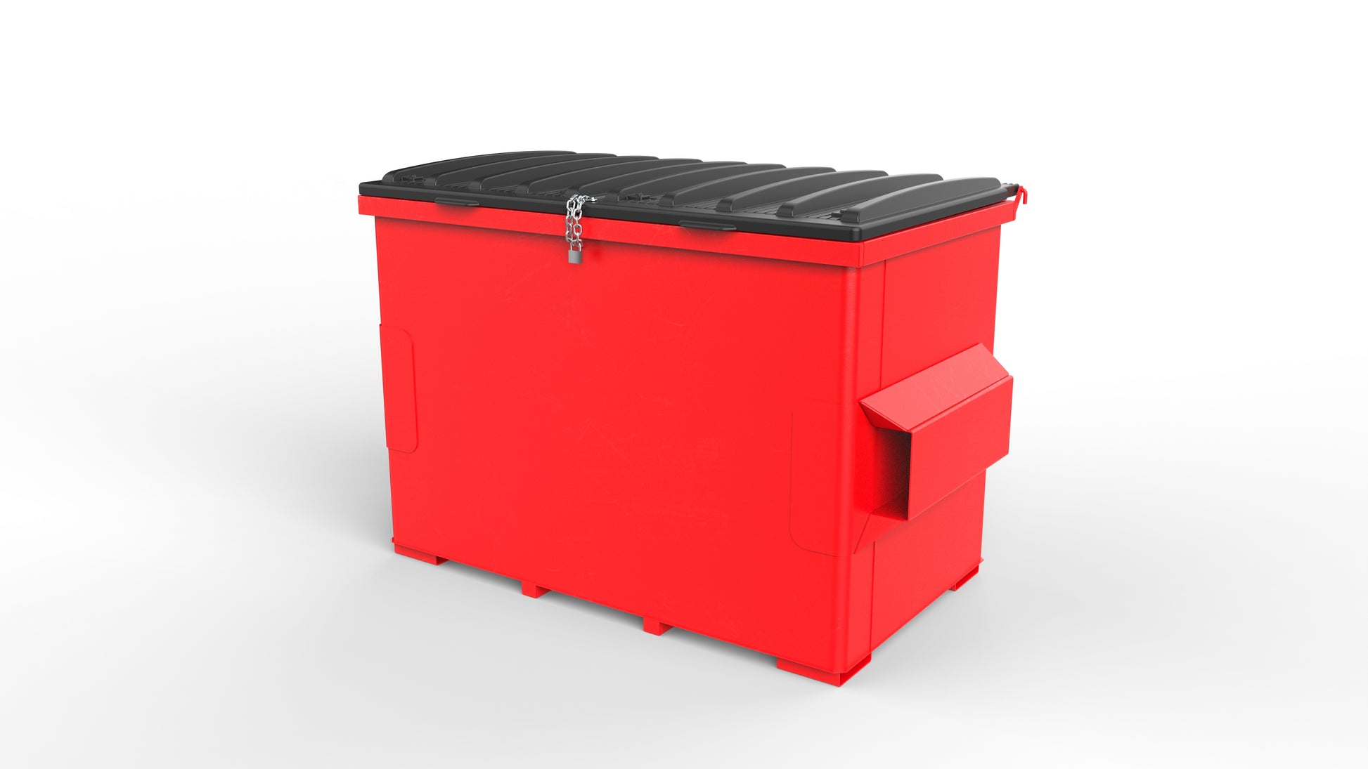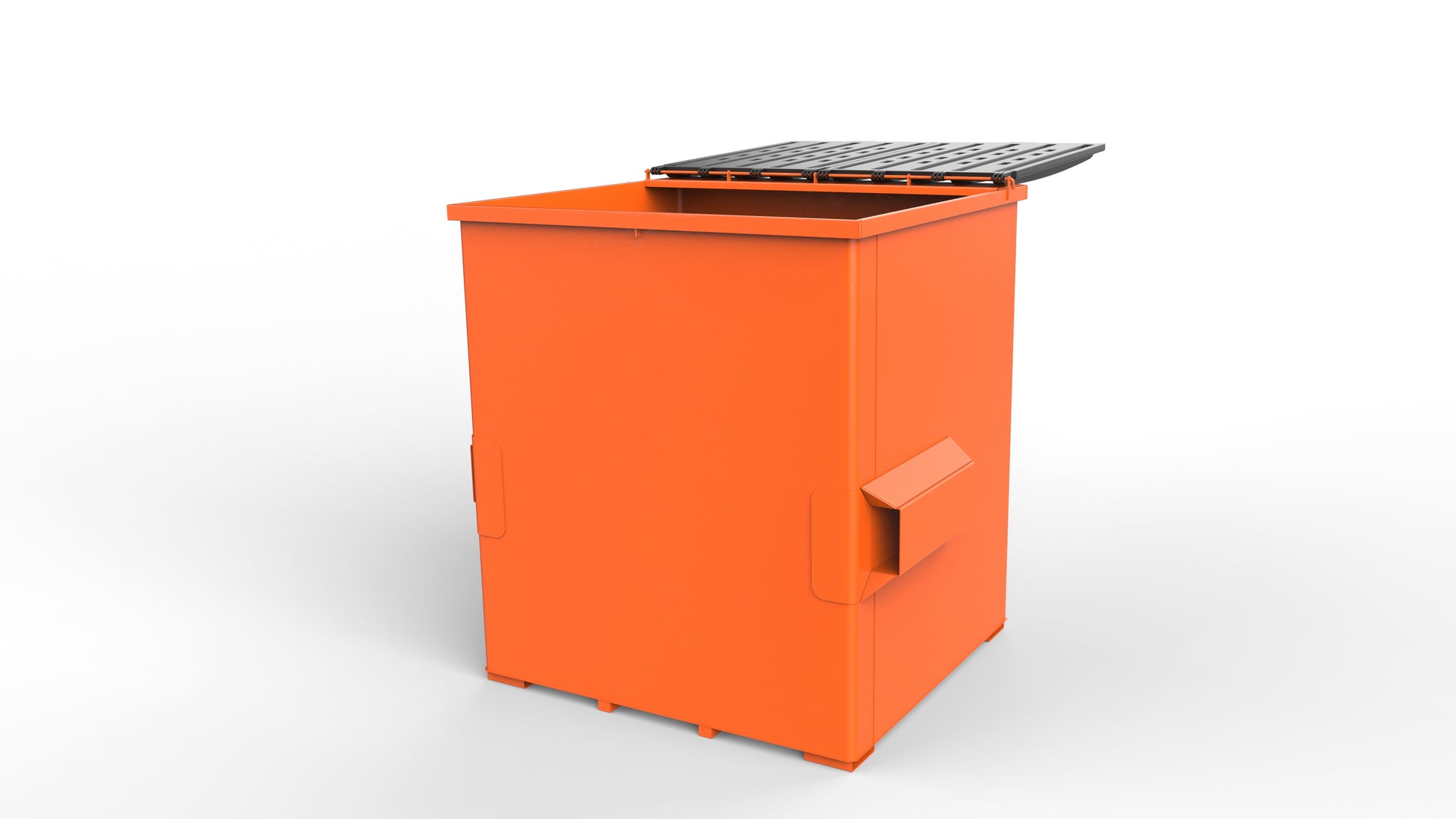 The fully powder coated interior and exterior provides enhanced corrosion resistance resulting in a longer lasting bin. We sand blast our bins before painting, removing any containments, to ensure the best paint adhesion possible. Our signature rounded corners and heavy-duty corner guards minimize the potential for damage while keeping your bin looking professional. Oversized fork pockets with lead-ins improve visibility and make pickup easier for the driver. Corner foot plates accommodate large HD casters or custom skid plates, offering versatility. The durable rotomolded lids feature UV stabilized plastic and four heavy-duty hinge points for added strength. Easy-lift lid handles make operation effortless, while lid chains allow for padlock attachment (padlock sold separately).