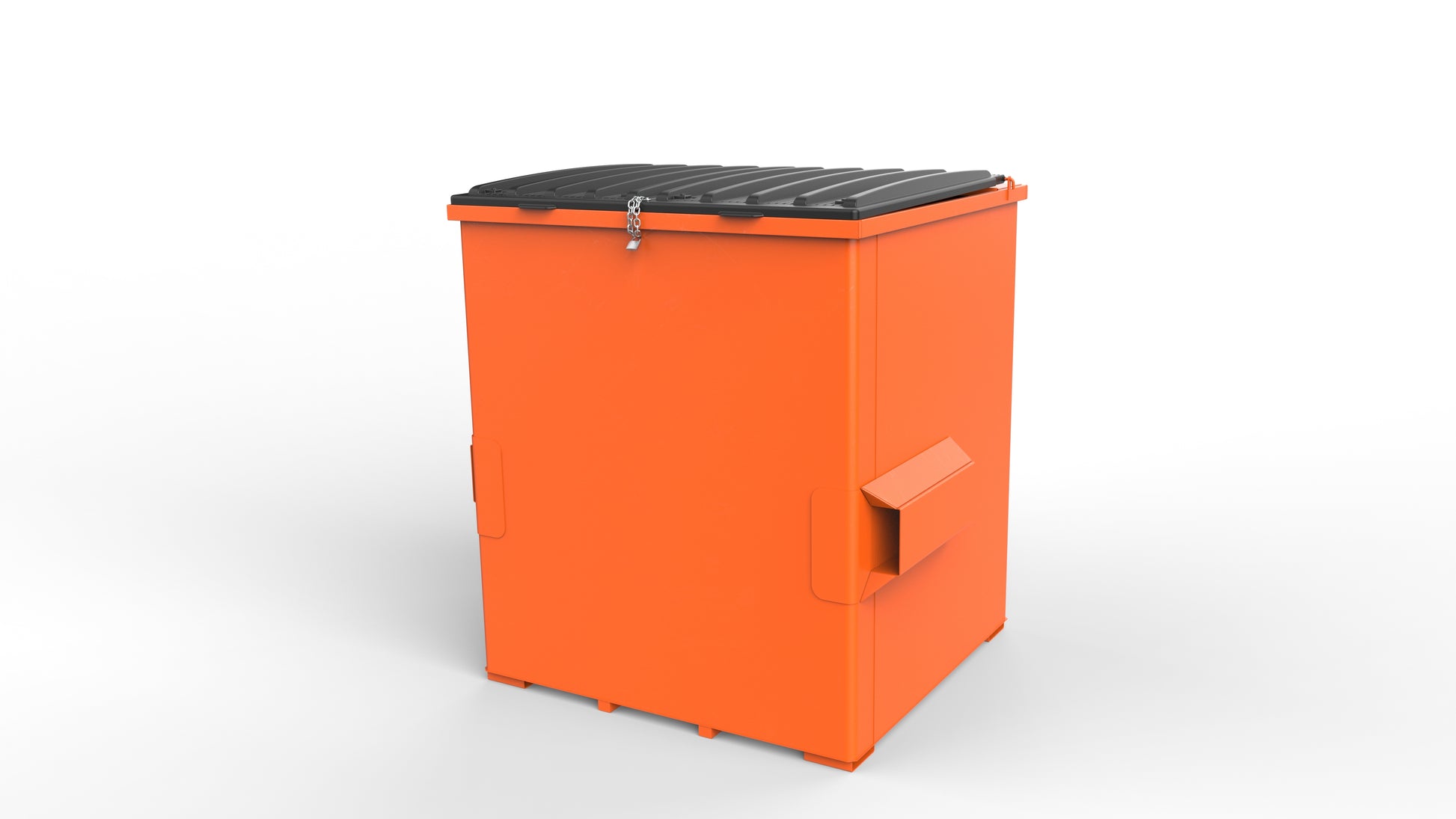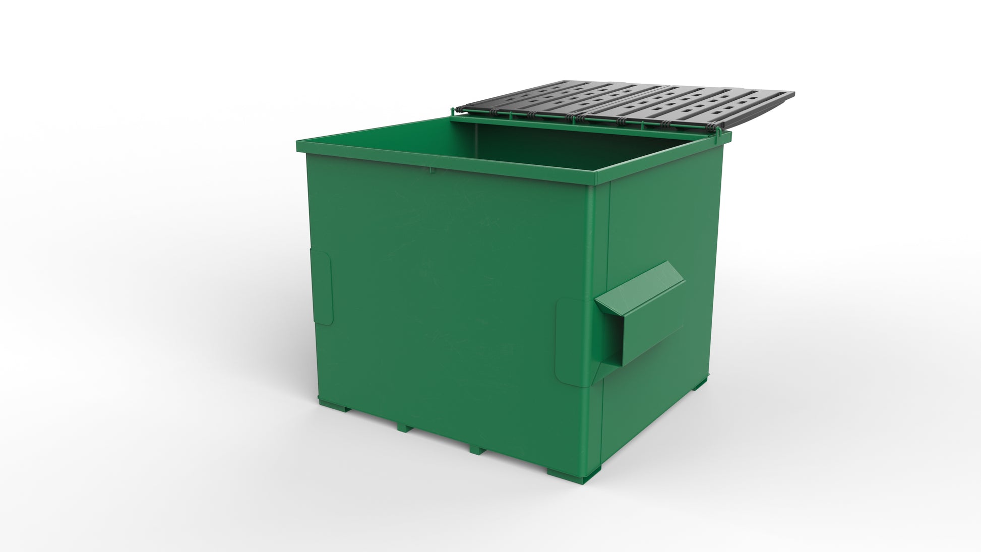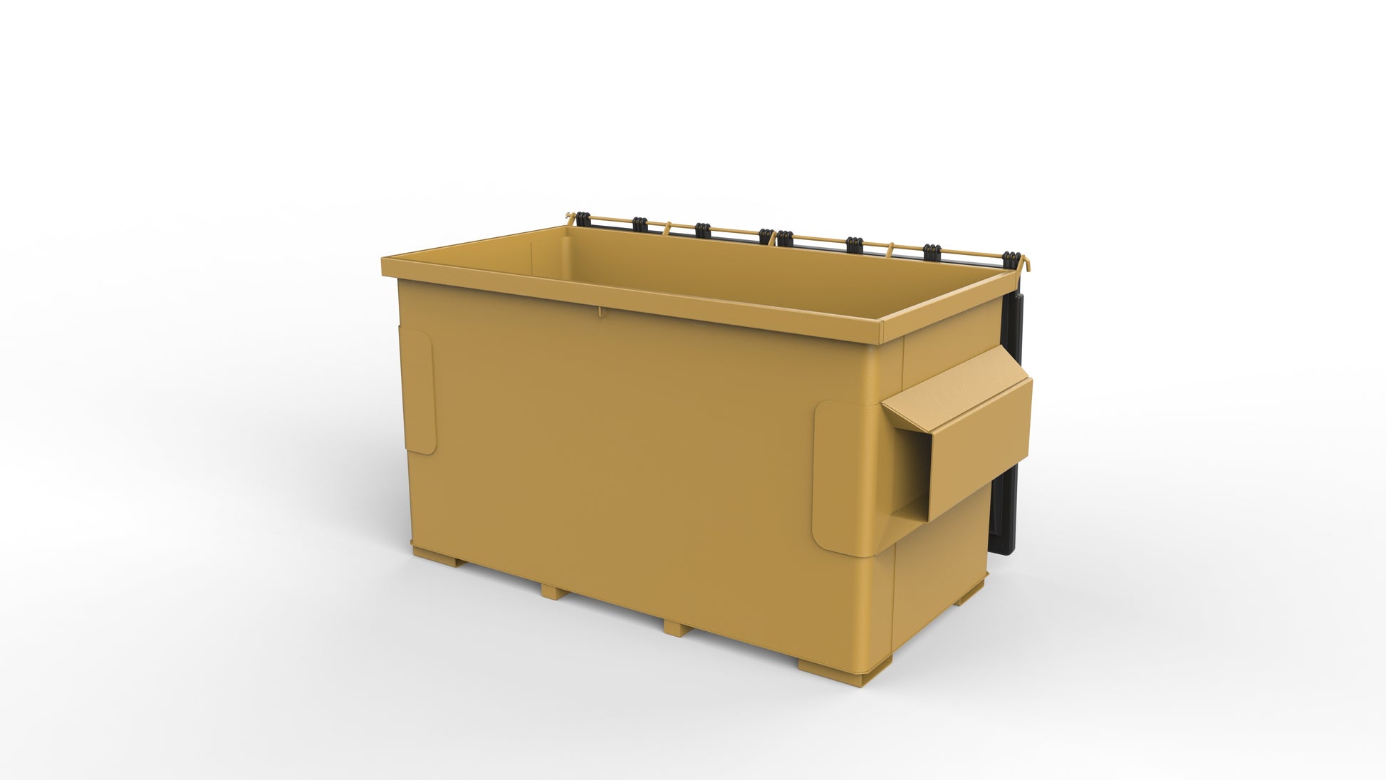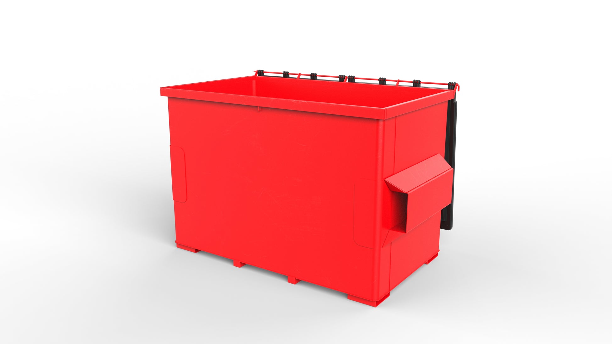 The fully powder coated interior and exterior provides enhanced corrosion resistance resulting in a longer lasting bin. We sand blast our bins before painting, removing any containments, to ensure the best paint adhesion possible. Our signature rounded corners and heavy-duty corner guards minimize the potential for damage while keeping your bin looking professional. Oversized fork pockets with lead-ins improve visibility and make pickup easier for the driver. Corner foot plates accommodate large HD casters or custom skid plates, offering versatility. The durable rotomolded lids feature UV stabilized plastic and four heavy-duty hinge points for added strength. Easy-lift lid handles make operation effortless, while lid chains allow for padlock attachment (padlock sold separately).